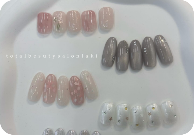 和光市店ではネイル専門サロンとして指先の美しさをご提案し、成増店ではネイル・アイラッシュ・ホワイトニング・脱毛まで、トータルビューティーをサポートしています。